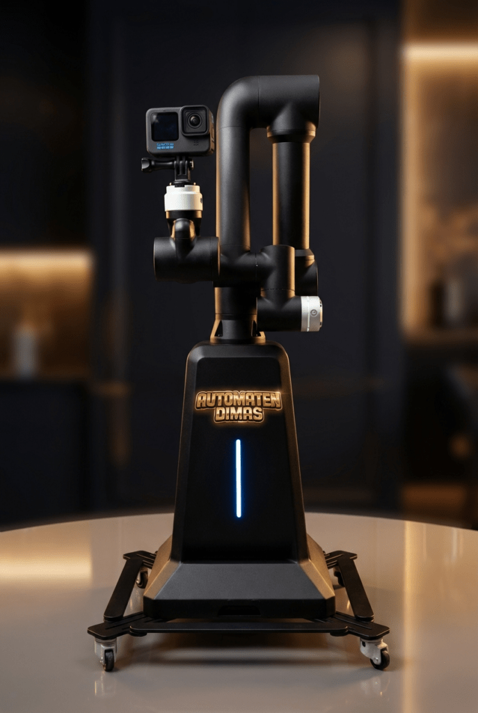 Stellen Sie sich vor, Ihre Veranstaltung verwandelt sich in eine Bühne, auf der jeder Gast zum Star wird. Mit unserem brandneuen VideoBot – einem hochmodernen Roboterarm mit integrierter Kamera – bieten wir von Automaten Dimas Ihnen ab sofort genau dieses Erlebnis zum Mieten! Ob Firmenfeier, Messe, Gala, Hochzeit oder Promotion-Event: Unser VideoBot sorgt für Glamour, Unterhaltung und bleibende Erinnerungen, die Ihre Gäste begeistern und Ihre Marke ins Rampenlicht stellen.