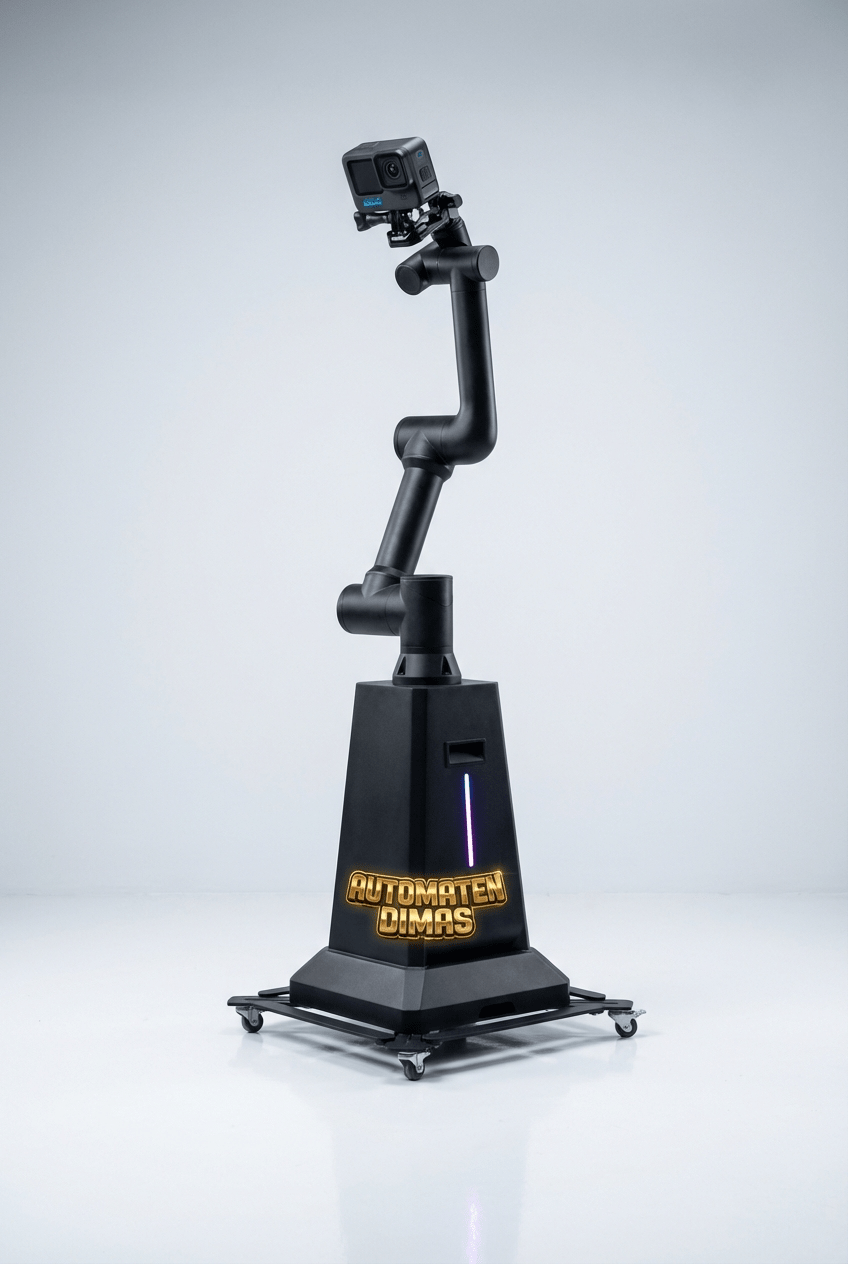 Stellen Sie sich vor, Ihre Veranstaltung verwandelt sich in eine Bühne, auf der jeder Gast zum Star wird. Mit unserem brandneuen VideoBot – einem hochmodernen Roboterarm mit integrierter Kamera – bieten wir von Automaten Dimas Ihnen ab sofort genau dieses Erlebnis zum Mieten! Ob Firmenfeier, Messe, Gala, Hochzeit oder Promotion-Event: Unser VideoBot sorgt für Glamour, Unterhaltung und bleibende Erinnerungen, die Ihre Gäste begeistern und Ihre Marke ins Rampenlicht stellen.